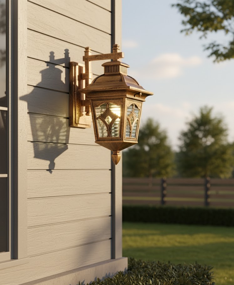 Đèn tường ngoại thất cổ điển là mẫu đèn trang trí ngoài trời mang phong cách quý phái và sang trọng. Được chế tác theo tinh thần kiến trúc châu Âu cổ điển. Với lớp phủ màu vàng đồng nổi bật và những đường nét chạm khắc tinh tế. Chiếc đèn không chỉ đóng vai trò chiếu sáng mà còn là điểm nhấn nghệ thuật cho mọi không gian ngoại thất.