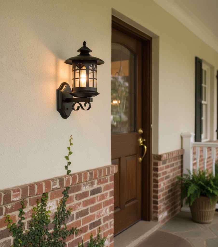 Ánh sáng vàng êm dịu từ Đèn tường trang trí ngoài trời vintage mang lại cảm giác ấm áp, thân thiện, rất phù hợp cho không gian trước cửa nhà, hàng hiên hoặc cổng ra vào. Dù là buổi chiều tối hay đêm muộn, ánh sáng từ đèn vẫn tạo ra sự gần gũi và giúp ngôi nhà trở nên nổi bật hơn. Đèn không chỉ chiếu sáng mà còn thay thế vai trò của một món decor sang trọng, giúp ngôi nhà trở nên nổi bật hơn.
