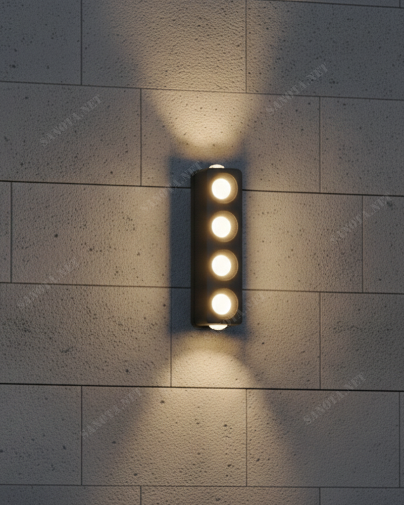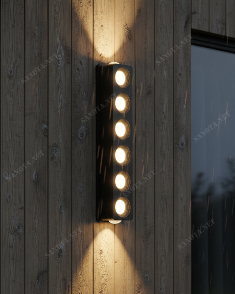 Đèn tường là giải pháp chiếu sáng hiện đại, mang đậm tính nghệ thuật. Với thiết kế hình chữ nhật thon dài và các mắt LED nổi bật. Chiếc đèn này tạo ra hiệu ứng ánh sáng độc đáo, lan tỏa lên và xuống tường. Đây là lựa chọn lý tưởng để trang trí mặt tiền, hành lang, hoặc các không gian nội thất cần điểm nhấn mạnh mẽ, tinh tế và đầy phong cách.