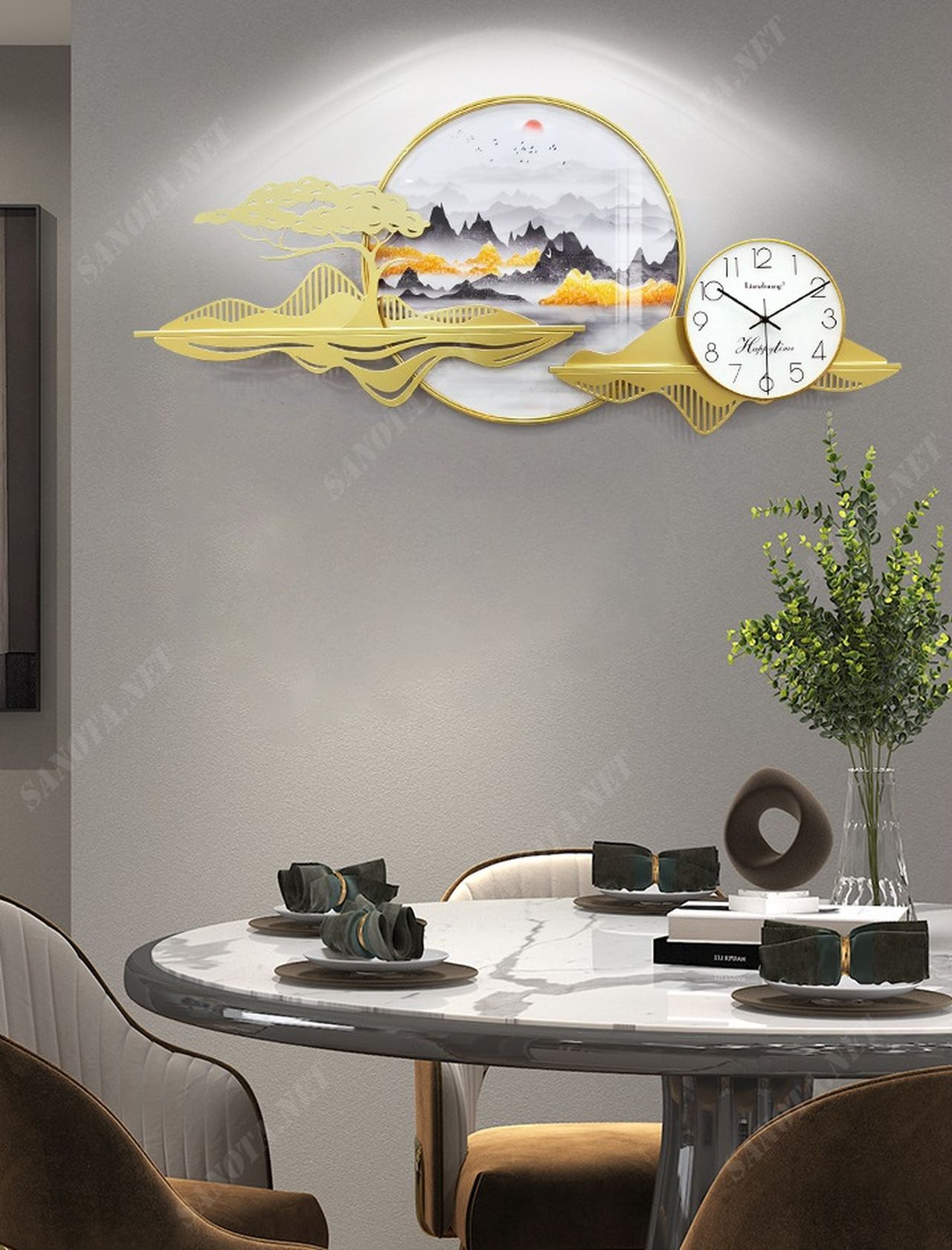 Đồng hồ kết hợp tranh sắt sơn thuỷ hữu tình SNT2178