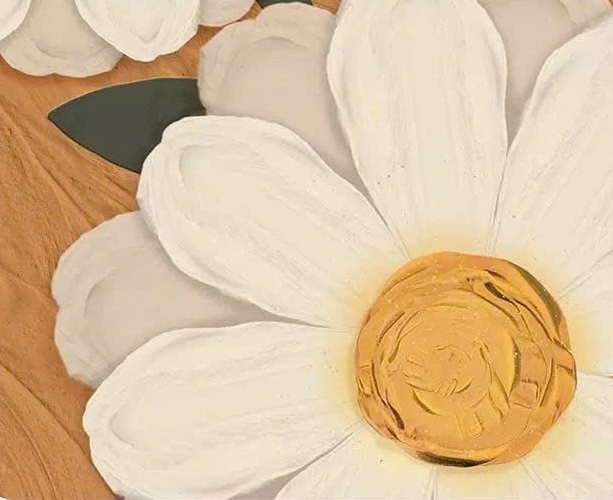 Mặt đồng hồ được chế tác với hình ảnh bông hoa cúc hoạ mi nhẹ nhàng và sang trọng. Kết hợp cùng viền kim loại vàng ánh kim. Mang đến cảm giác trang nhã nhưng không kém phần nổi bật.
