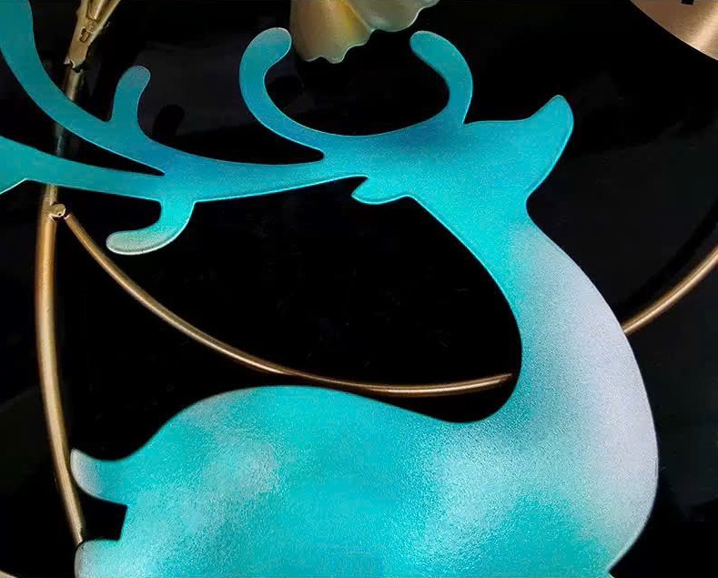 Với thiết kế hình chú hươu uy nghi, dát vàng tinh xảo. Đồng hồ không chỉ là công cụ xem giờ mà còn là tác phẩm nghệ thuật mang vẻ đẹp sang trọng, ấm cúng. Chế tác từ sắt cao cấp, đồng hồ được bảo vệ bởi lớp sơn tĩnh điện chống trầy xước. Giúp bền màu theo thời gian.
