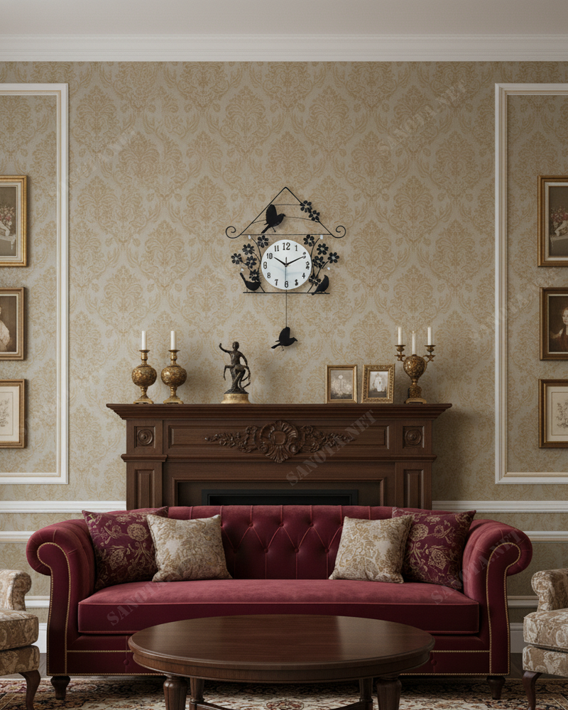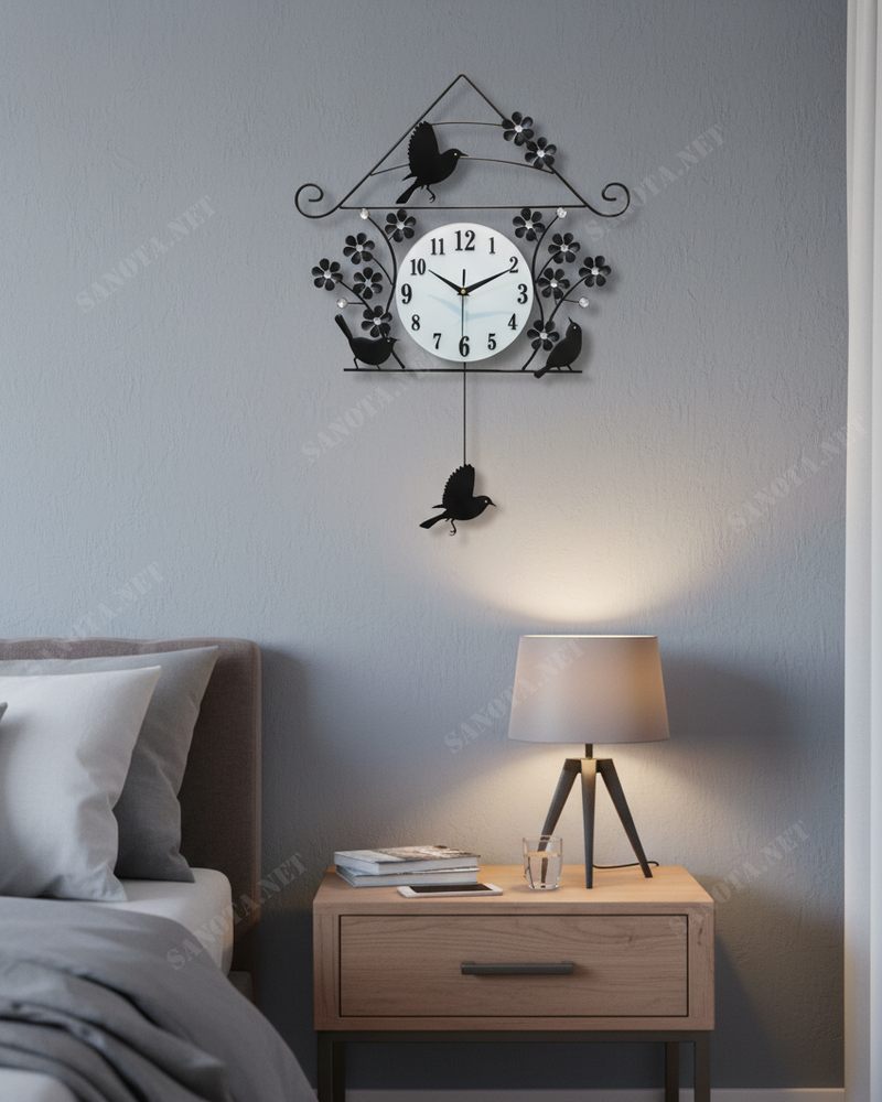 • Phần dưới: Hai chú chim nữa được đặt đối xứng hai bên mặt đồng hồ, làm tăng tính cân bằng cho bố cục.