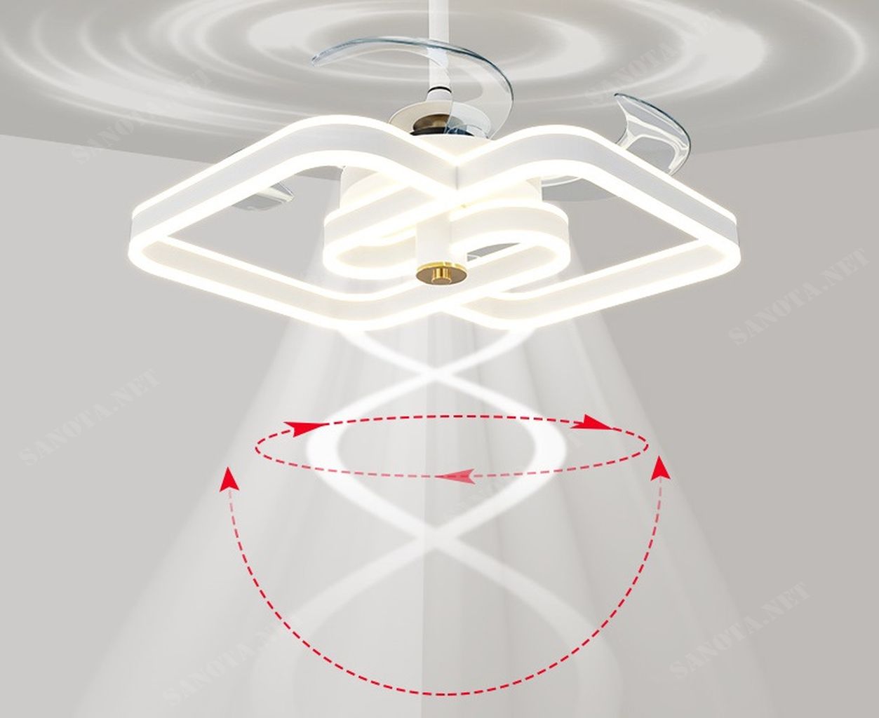 Những đặc điểm của quạt trần kết hợp đèn LED màu trắng tinh tế SNT2844: