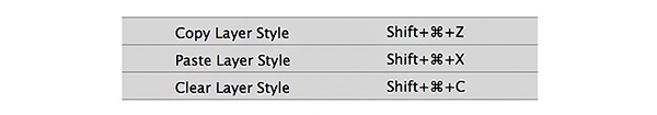 Có ba phím nóng mà bạn phải biết và sử dụng : copy, paste và clear layer styles.