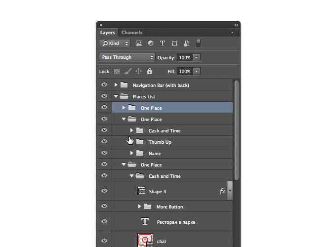Sau khi làm việc với các layer và nhóm chúng lại, bạn thử giữ Alt và click vào biểu tượng mũi tên ở phía trước folder chính, tất cả các layer con bên trong sẽ được mở ra cho dù nó đang ở folder 2,3 cấp đi chăng nữa.
