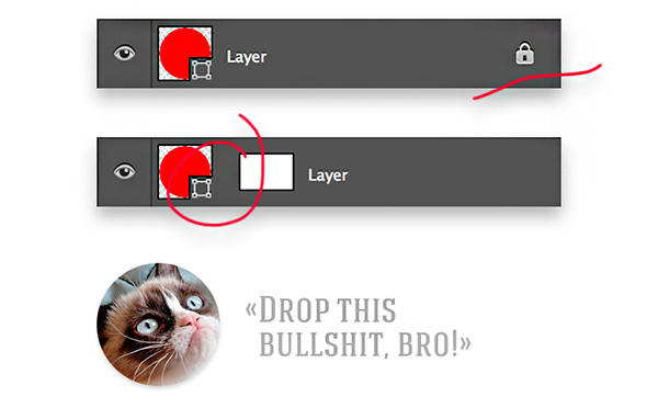 Một số designer thường khóa các layer lại trong quá trình làm việc, nhưng nếu bạn đặt layer ở đâu đó trong 1 mớ layer nhiều như mê cung, đối tác của bạn sẽ phải mở tất cả các folder để tìm layer đó vì nó đã bị khóa và không thể di chuyển. Điều đó rất mất thời gian và khó để làm việc.