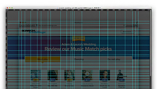 Mặc dù biết rằng các đường Guides rất hữu ích, nó giúp ta canh ngay hàng thẳng lối các yếu tố, hoặc tạo 1 hệ thống lưới nhanh chóng. Nhưng đôi khi chúng ta chỉ sử dụng nó để canh hàng 1 lần rồi không sử dụng nó nữa, không xóa đi mà cứ để ở đó, càng nhiều thì chúng ta lại càng quên, để rồi khi sử dụng lại thì chúng đã trở nên một cái mạng nhện khổng lồ rối nùi, ngay cả bản thân ta còn khó phân biệt được những đường guides nào đang sử dụng, huống gì khi đưa cho người khác sử dụng file photoshop của chúng ta. Do đó, nên xóa đường guides liền ngay sau khi sử dụng để tối giản số lượng đường guides trên một layout, chỉ giữ lại những cái chính thật sự cần thiết.