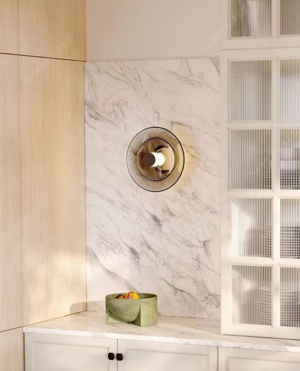 Với chất liệu thủy tinh, đèn gắn tường mang lại vẻ đẹp thanh lịch. Phù hợp cho những không gian nội thất hiện đại, tối giản hoặc sang trọng. Nó có thể trở thành một tác phẩm nghệ thuật thực sự, thu hút mọi ánh nhìn.