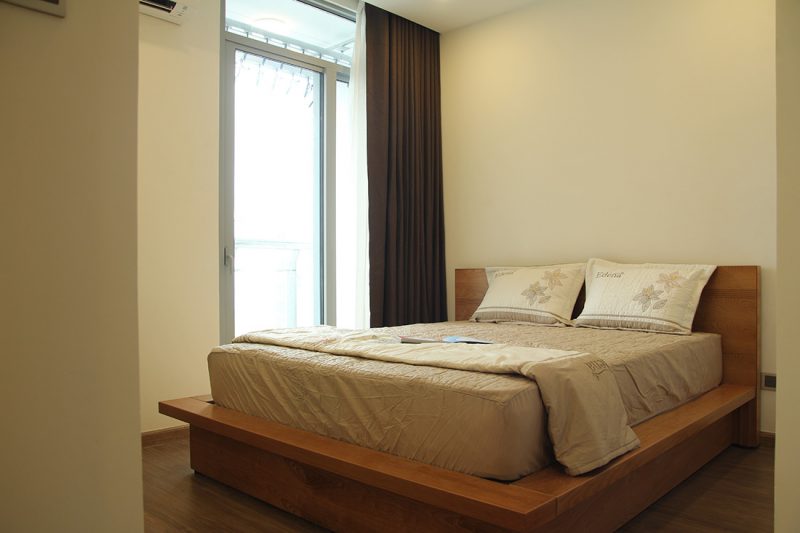 Phòng ngủ sử dụng giường ngủ kiểu Nhật, với gỗ ash và nệm Edena.