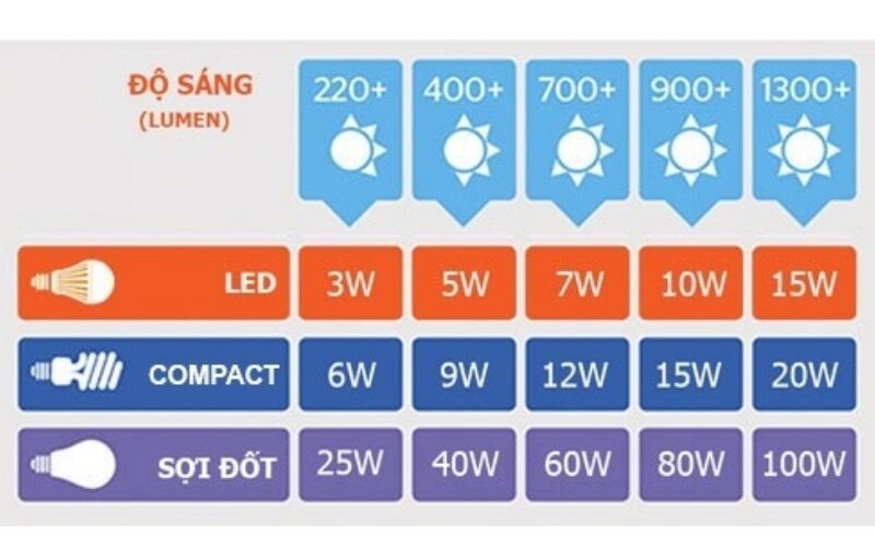 - Đèn LED: 90-150 lumen/watt
